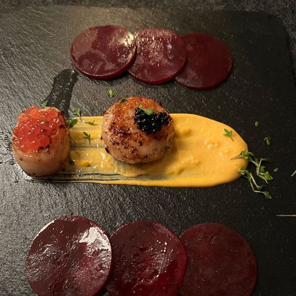Menü 83,- EUR (inklusive Aperitif, Gruß aus der Küche, Wasser)
