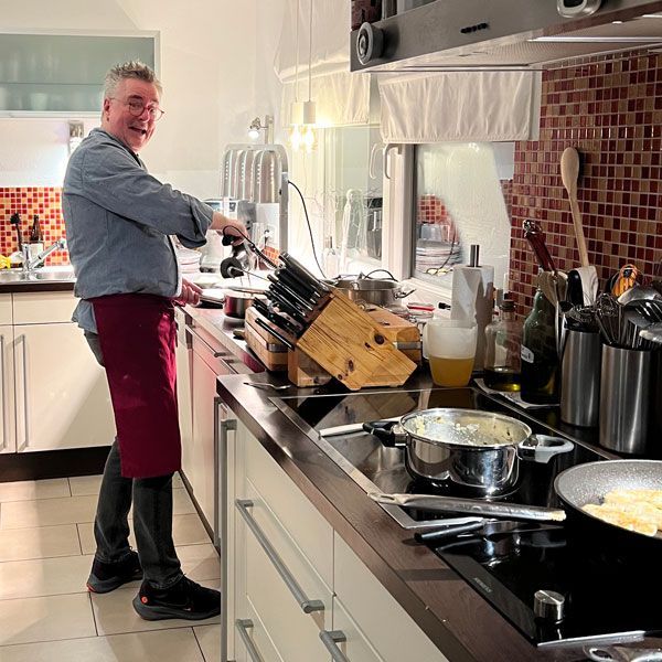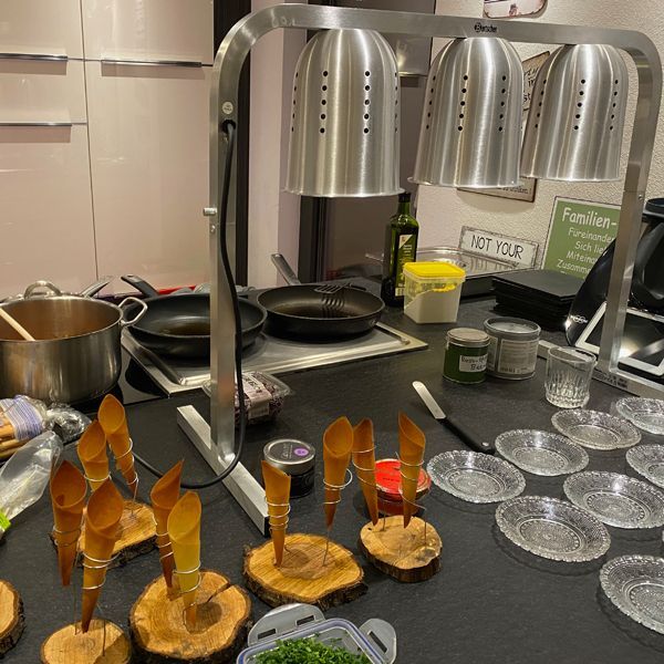 Auf einer unserer Reisen haben wir einen unvergesslichen Abend in einem fremden Esszimmer verbracht. An einer Tafel mit unbekannten, aber gleichgesinnten Essensliebhabern wurde vor unseren Augen ein mehrgängiges Menü in einer privaten Küche gekocht. Diese Erinnerung hat mich inspiriert auch in unserem Esszimmer auf dem Bännjerrück in Kaiserslautern dieses Konzept umzusetzen. An verschiedenen Terminen im Jahr bekochen und bewirten wir 8 Gäste in unserem Esszimmer. In lockerer Atmosphäre, mit Blick in die Küche werden wir einen kulinarischen, aufregenden Abend verbringen.
